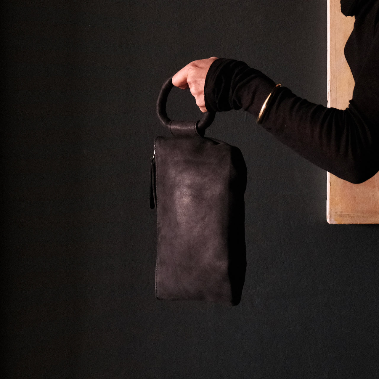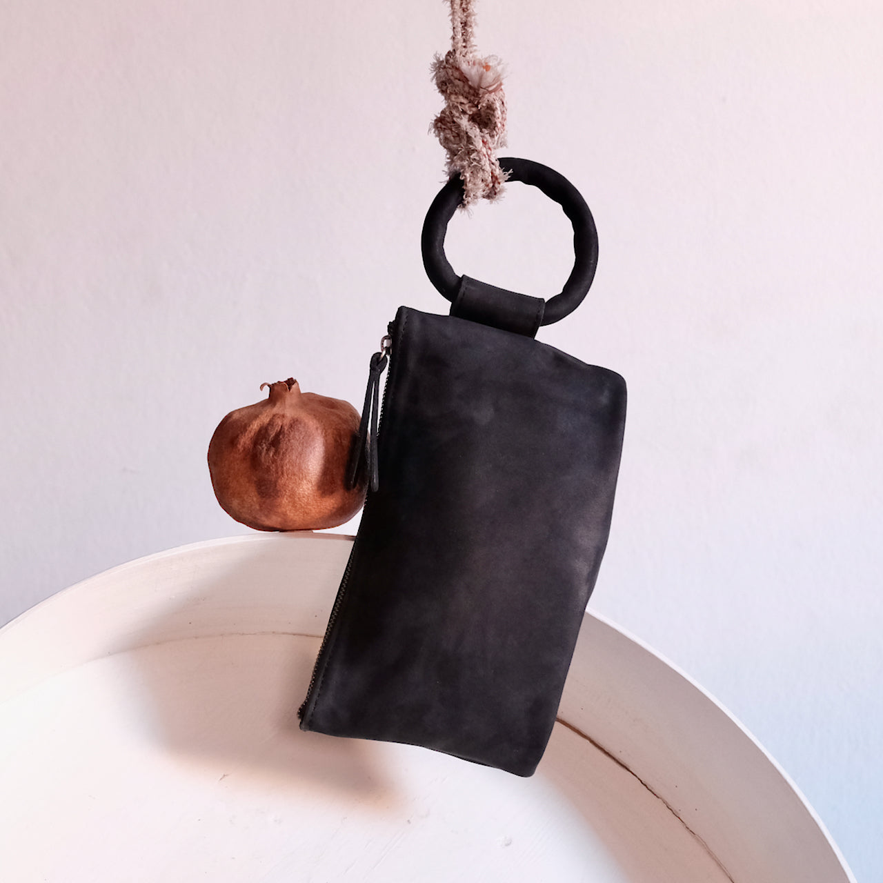 Crafted in premium full-grain leather, our Hayat Clutch features a subtle vintage finish and a circular rolled leather handle. It feels great in your hand or tucked under your arm. It has a zip closure, a leather zip pull, and inside pockets for your small essentials. The bottom gusset gives it a relaxed shape, providing more space for your belongings.