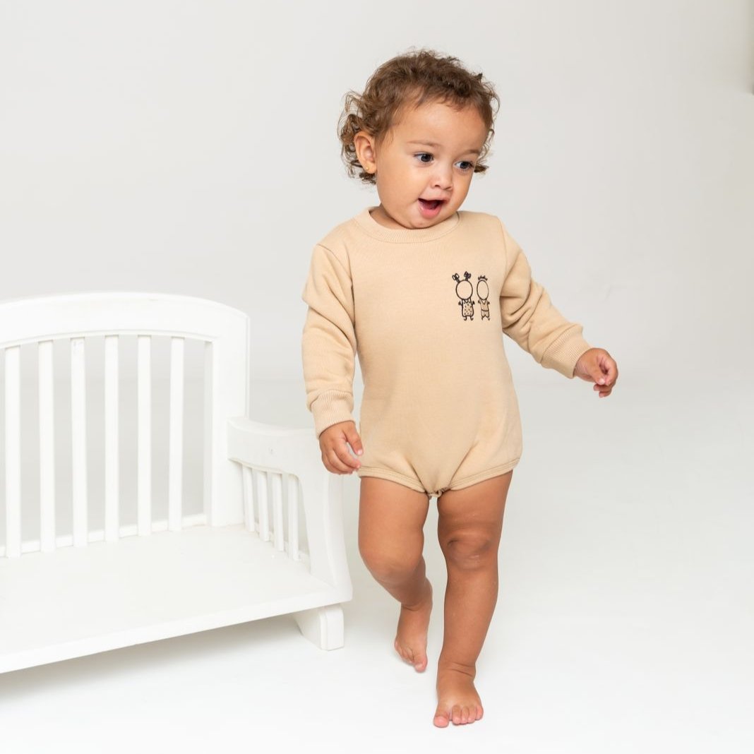 Organic cotton bodysuits, available in 3 colour options.