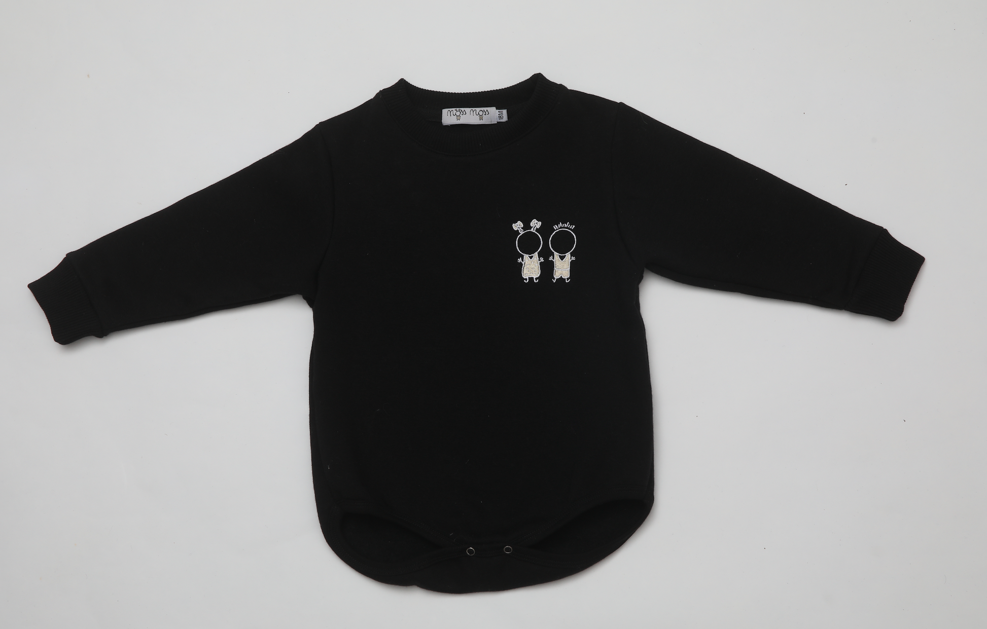 Material: Organic sweatshirt thickness cotton exterior and interior, press stud fastening closure system.