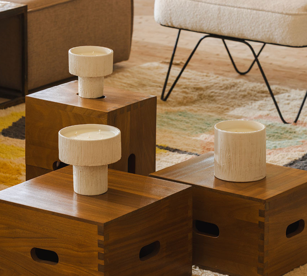Its delicate textured lines catch the candlelight, creating a soothing and contemporary atmosphere. Beyond its fragrance, it becomes a lasting decorative object to be reinvented once the wax has melted.